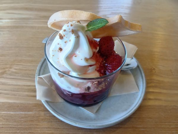 「自家製苺のコンポートパフェ」