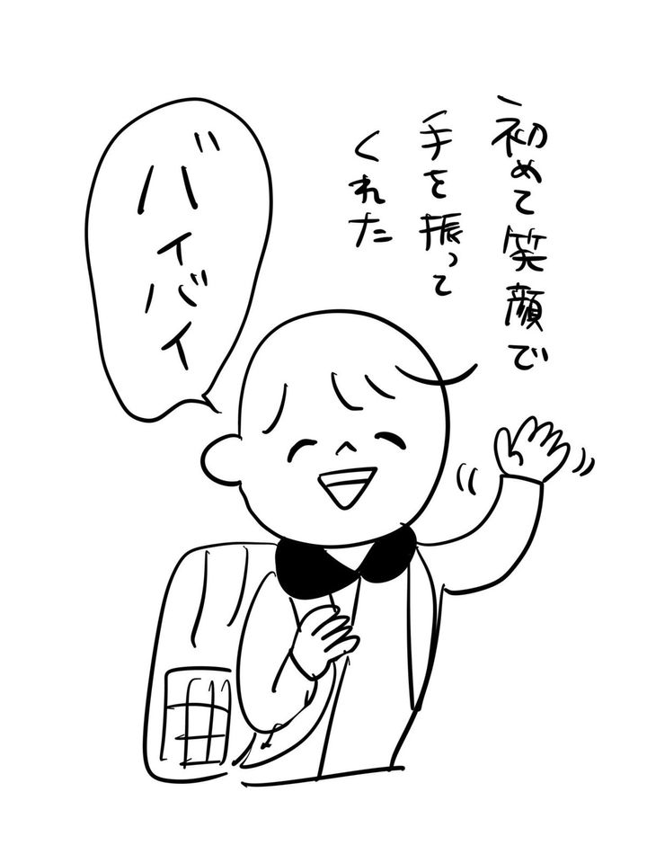 むぴーさんによると、幼稚園の初登園から6日間にわたって泣き続けていた次男が、やっと笑顔で登園できた日を描いた作品だといいます。その感動を描いたイラストをごらんください。