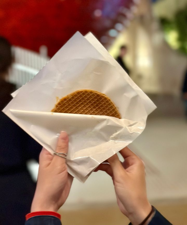 ストロープワッフル ¥450こちらはオランダの名物のお菓子で薄いパリパリのワッフルにキャラメルがサンドされたもの。キャラメルが甘いのでコーヒーも購入して一緒に食べると合うのでおすすめです!!