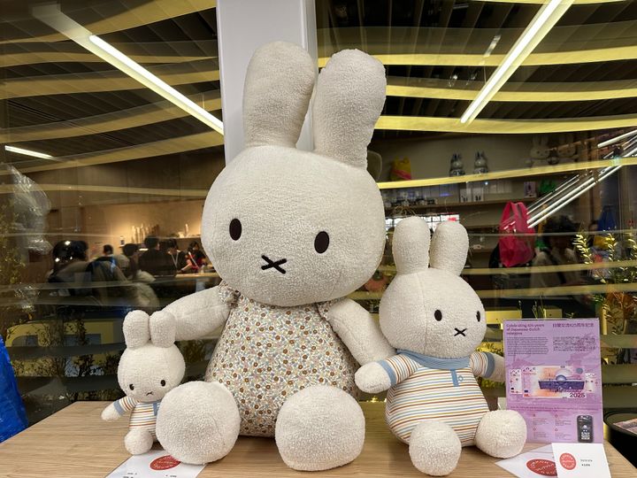 同じお土産屋さんで購入したサンリオコラボのミャクミャクキーホルダーと撮りました。