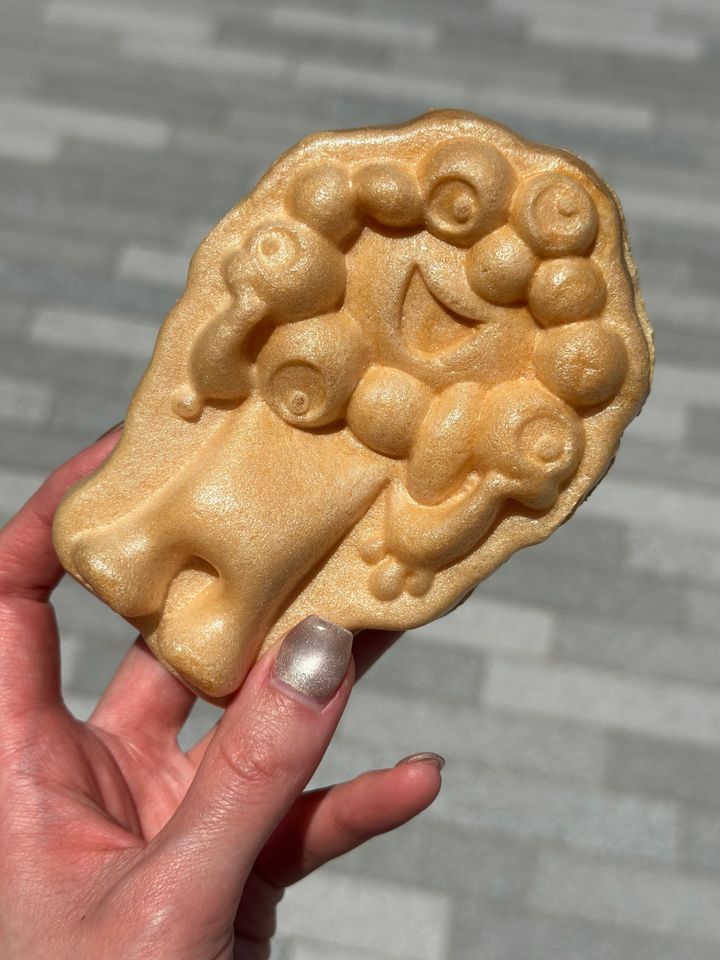 ミャクミャクをかたどったモナカアイスはバニラと抹茶味の2種類ありました。バニラ味を購入しましたが、あっさりしていて食べやすくとても美味しかったです。見た目も可愛いので写真を撮りたくなります!ミャクミャクもなかアイス ¥486