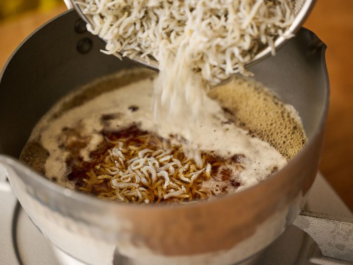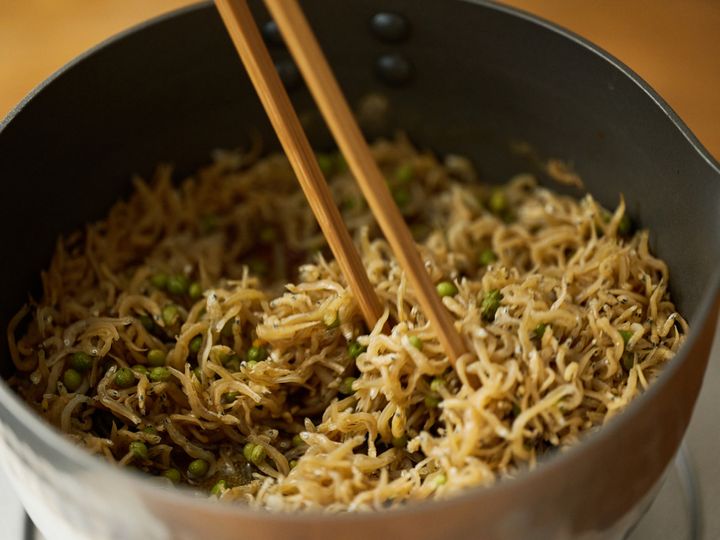 湯通しすることで、ちりめんじゃこの余分な塩分が落ち、しっとり仕上がります。