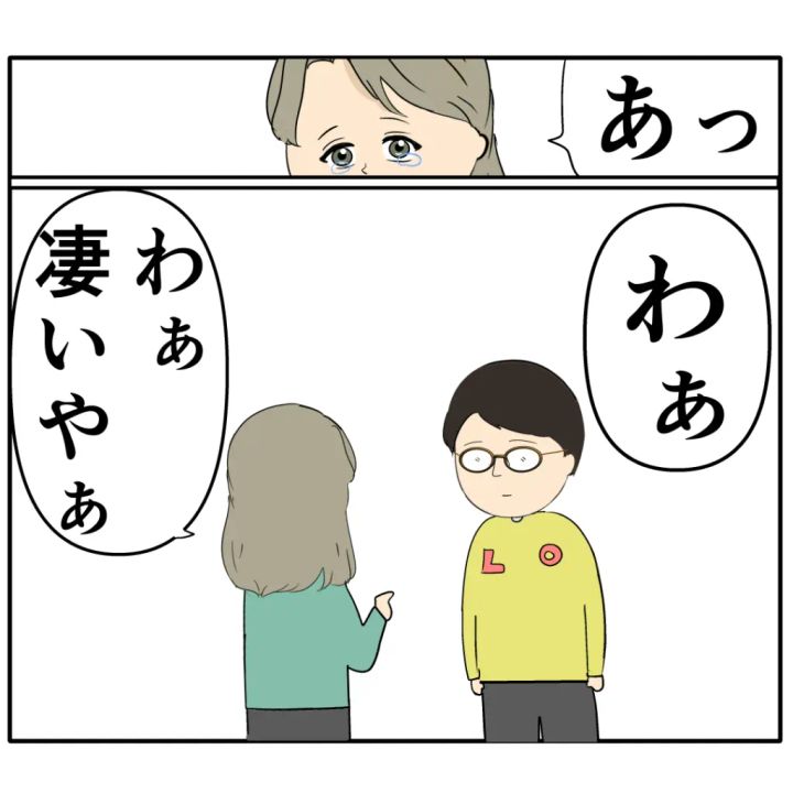 ドアを開けたジュリ実さんは、めが根さんがペアルックの服を着ていることに気づくと「わぁ!わぁ凄いやぁ」と驚きながら喜びました。