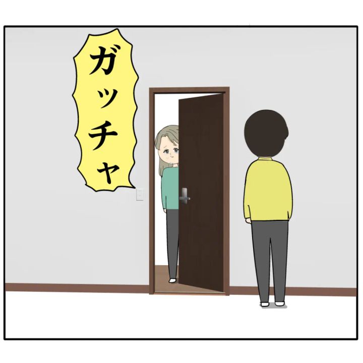 ジュリ実さんとしっかり向き合い気持ちに寄り添おうと覚悟を決めためが根さんは、以前は恥ずかしくて断ったペアルックの服を着て「話しをしよう」と言ってジュリ実さんの部屋のドアをノックしました。ジュリ実さんが暗い顔でドアを開けました。