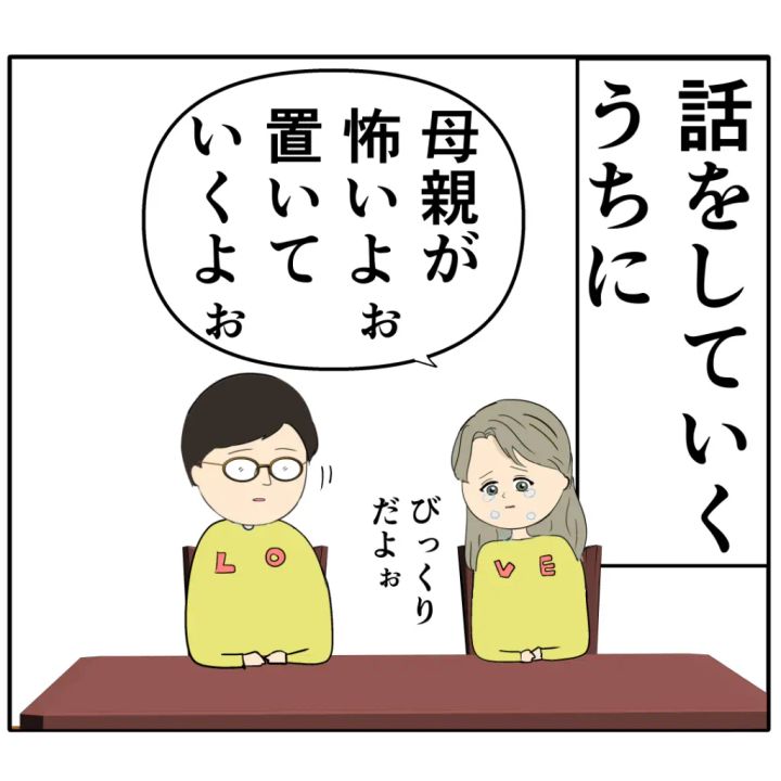 部屋から出てきたジュリ実さんは、めが根さんとお揃いの服に着替えると「母親が怖いよぉ。置いていくよぉ」と涙ながらに幼少期のことを話し始めました。