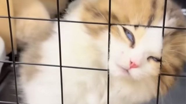 外に出たい気持ちが爆発! 網に顔をむぎゅっと押し込む子猫さんが可愛すぎ