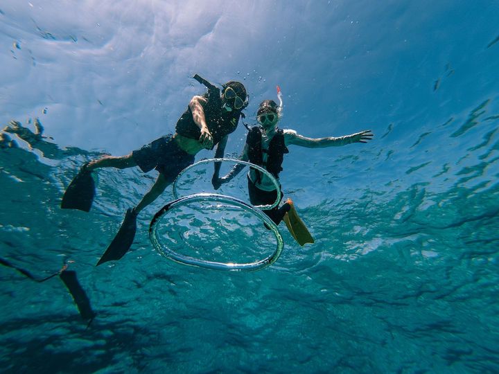 豊富なマリンアクティビティも「ANAインターコンチネンタル石垣リゾート」の魅力の一つ。シュノーケリングやシーカヤック、SUPなどのメニューがあり、一日中楽しみたい人には「1DAYアクティブパスポート」や「1DAY レンタルパスポート」も用意している。さらに、空の上から石垣島の大自然を眺めることができる遊覧ヘリ飛行も想い出づくりには最適。