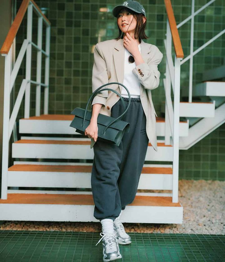 ジャケット¥61,600パンツ¥29,700(ともにシー/エスストア)タンクトップ¥8,250(ダブルスタンダードクロージング/フィルム)バッグ¥44,000(モフィオラ/アマン)靴¥14,960(ニューバランス/ニューバランスジャパンお客様相談室)靴下¥1,474(ユナイテッドアスレ/キャブ)キャップ¥4,620(ニューエラ)サングラス¥67,100(アイヴァン 7285/アイヴァン 7285 トウキョウ)ピアス¥29,700リング[左手]¥473,000リング[右手]¥808,500(すべてマリハ)