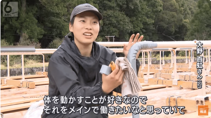 大野百虹さん、21歳。村で初めての女性いかだ師になるべく、去年の夏にいかだの運航会社「北山振興」に入社しました。