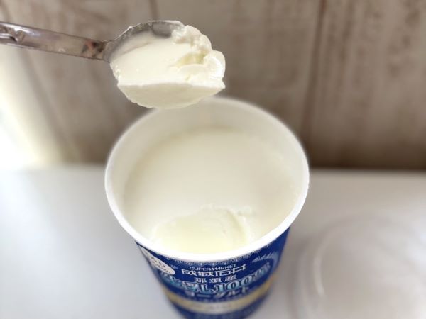とろりとまろやかな味わいでおすすめなのは成城石井オリジナル商品の「安曇野産 生乳100%ヨーグルト」。那須地方契約牧場の生乳100%に、カスピ海ヨーグルトと同じようにクレモリス菌を使用し、6時間30分発酵して作るという成城石井らしいこだわりが感じられる商品です。無糖ですが、口にすると舌の奥の方で牛乳のやわらかな甘みを感じます。酸味も少なく、そのままパクパクと食べ続けられるおいしさ。サラッとしたやわらかめのヨーグルトがお好みの人に。