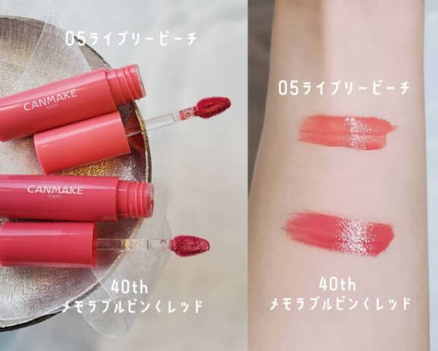 ▲キャンメイク「グロスティントシロップ」 (05 ライブリーピーチ、40th限定色 メモラブルピンクレッド) 各¥1,078(税込)