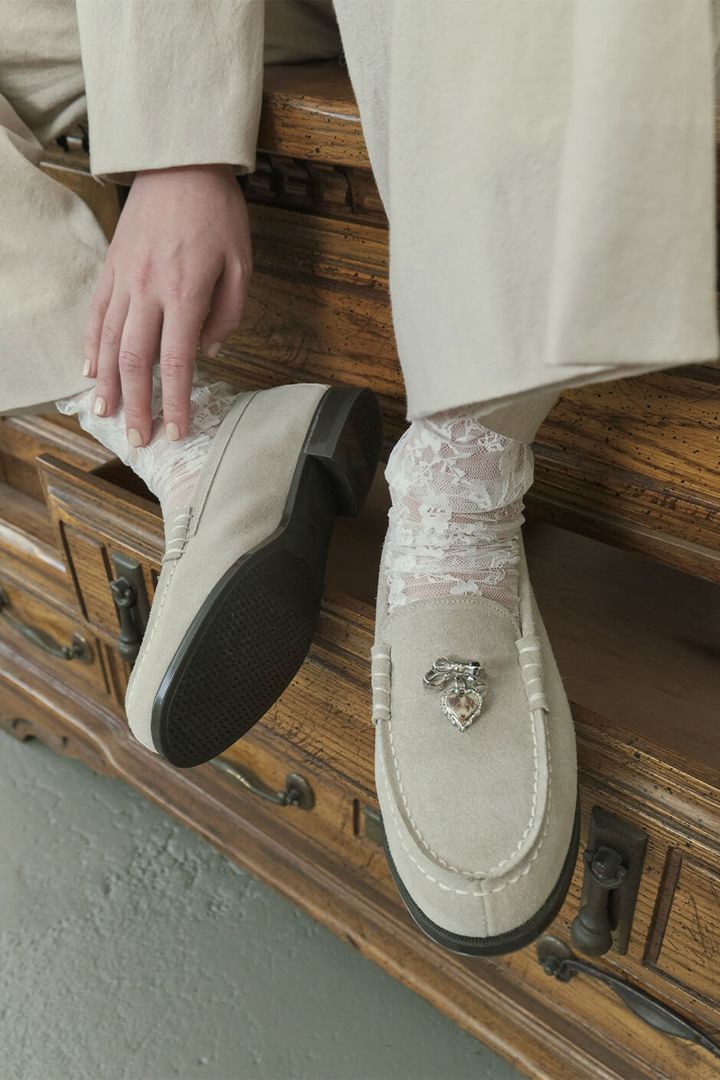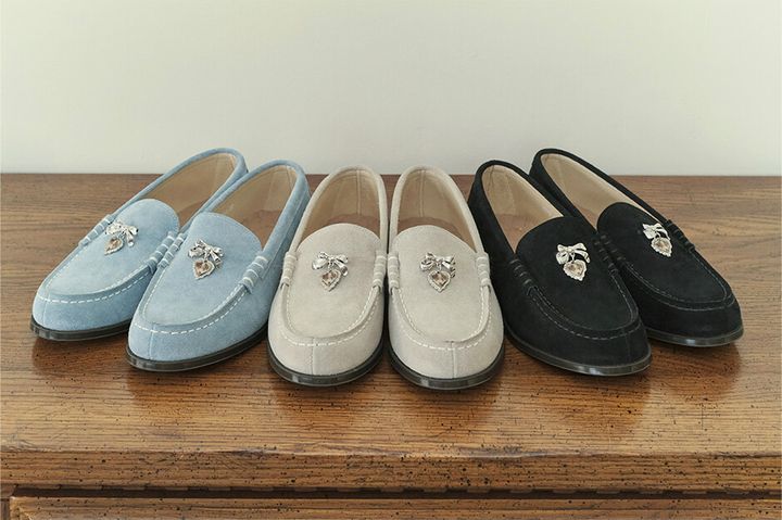 「Dangle heart」は黒、シルクベージュ、ブルーの3色で展開され、柔らかく発色するスエードベロア素材を使用。