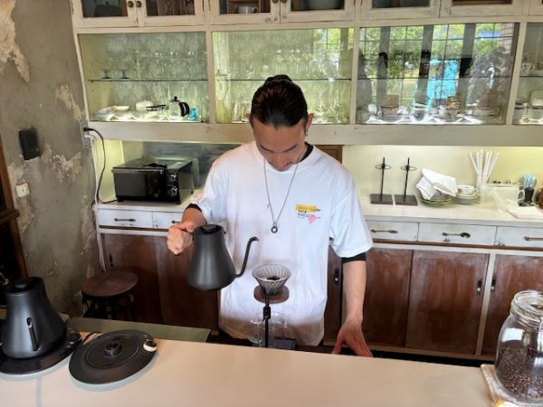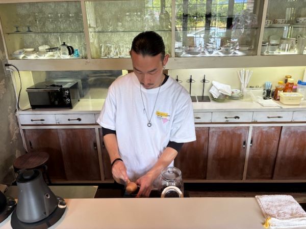 「焙煎仕立ての豆より、少し寝かせた豆の方が、自分は美味しいと思います。」と話してくださった店長の万田さん。こちらのお店の焙煎士です。