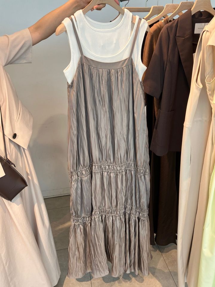 1.タンクトップとの重ね着が素敵なフェミニンワンピース