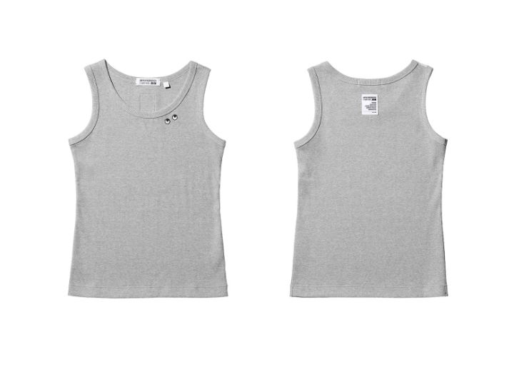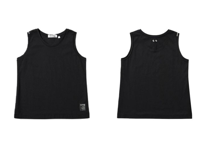 もう一つのデザインは、体にほどよくフィットするリブ編みコットン素材のタンクトップ。EYEマークが首元にあるので、インに着てもチラ見えします♡1枚で着たり、レイヤードスタイルにと着回し力抜群!今季のワードローブに欠かせなくなりそう!ユーモアあふれるデザインラベルもチェックしてくださいね。