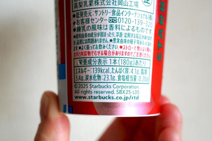 気になるカロリーは、1本(180ml)あたり139Kcal。「スターバックス® ストロベリークラッシュミルク」は、贅沢ないちごミルクそのものという味わいなので、ぜひ飲んでみて。