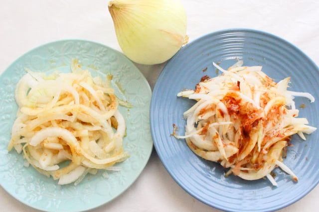 番組では、それぞれを新玉ねぎ1個で作っていましたが、今回は味わいの違いを確かめるため、新玉ねぎを半分にして2種類のオニオンスライスを作ってみます。
