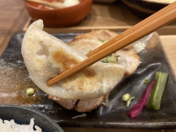 そして何と言っても注目は焼き餃子!!香り高い全粒粉を配合しているとのことで底はパリパリ、まわりはもっちり仕上がるそう。手包にこだわったり、火力の強い餃子専用の焼き台を使うことで、蒸しのクオリティを高く保ちながらパリッと焼き上げているのが特徴だそうです。