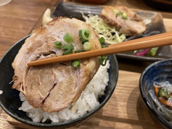 ランチのセットには自家製炙りチャーシューもついています。大きなチャーシューも間違いないお味です。