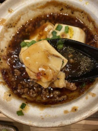 麻婆豆腐のセットの麻婆豆腐は土鍋に入っていて熱々。お味もいい感じのとろみでご飯ととっても合います!