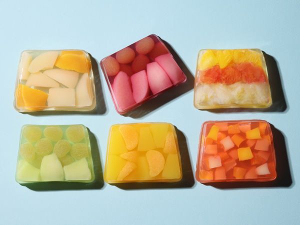 フランス料理のテリーヌを思わせる、ひとつに2種類の果実を詰めた宝石のようなゼリー。新作2種を含めた6種のフレーバーがラインアップ。製菓の世界大会「クープ・デュ・モンド・ドゥ・ラ・パティスリー2017」に日本代表選手として出場し、準優勝し、2023年の同大会で団長を務め、日本チームを優勝に導いたシェフ・駒居崇宏さんが開発。