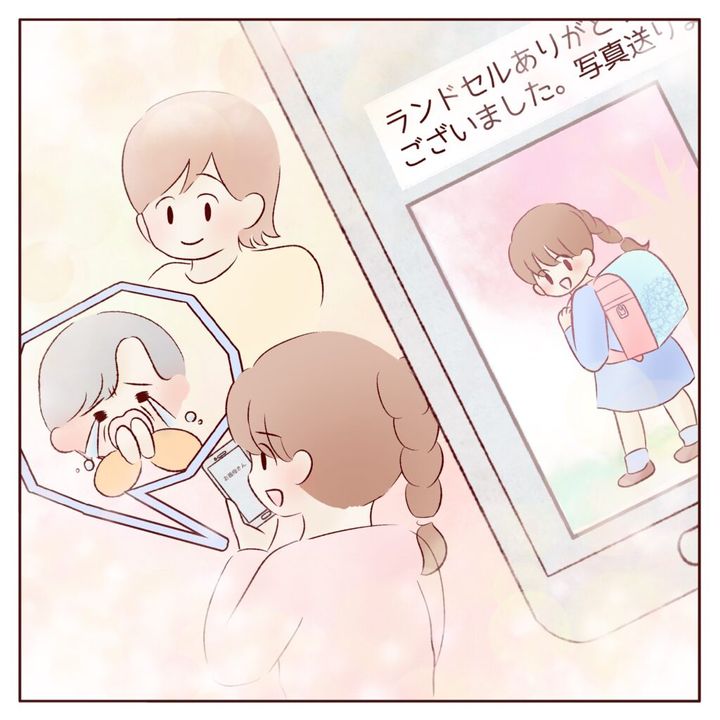 「ランドセルありがとうございました。写真送ります」と言葉を添えて、リンがランドセルを背負っている写真を義母に送ると、義母から涙を流しながら電話がかかってきたのでした。