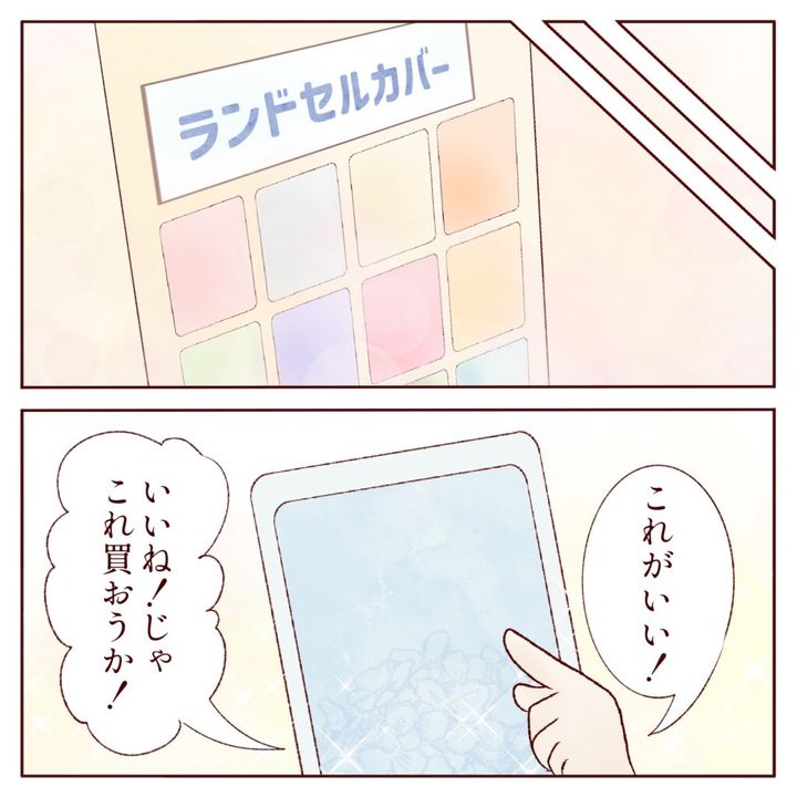 その後、リンと一緒にランドセルカバーを買いに行き、「これがいい!」と見つけたのは、水色のランドセルカバー。すぐに買うことに決めました。