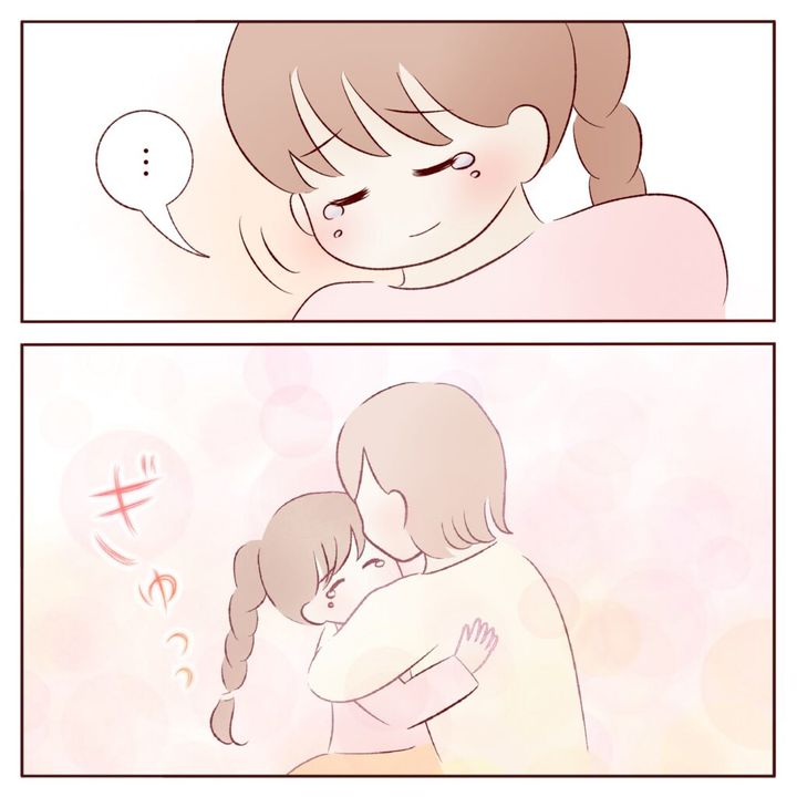 あんなにひどいことを義母にされたにもかかわらず、「おばあちゃんにイヤなこといっちゃった・・悲しんでるかも・・」と落ち込むリンに、「ママはしっかり意見を言えてすごいなーって思ったよ」と言うと、無言で頷くリン。そんなリンをギュッと抱きしめたのでした。