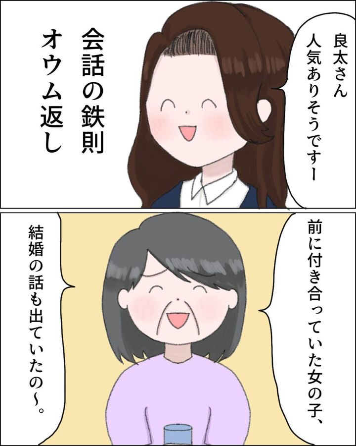 すると、「前に付き合っていた女の子、結婚の話も出ていたの~」義母が元カノトークを繰り広げてきました。