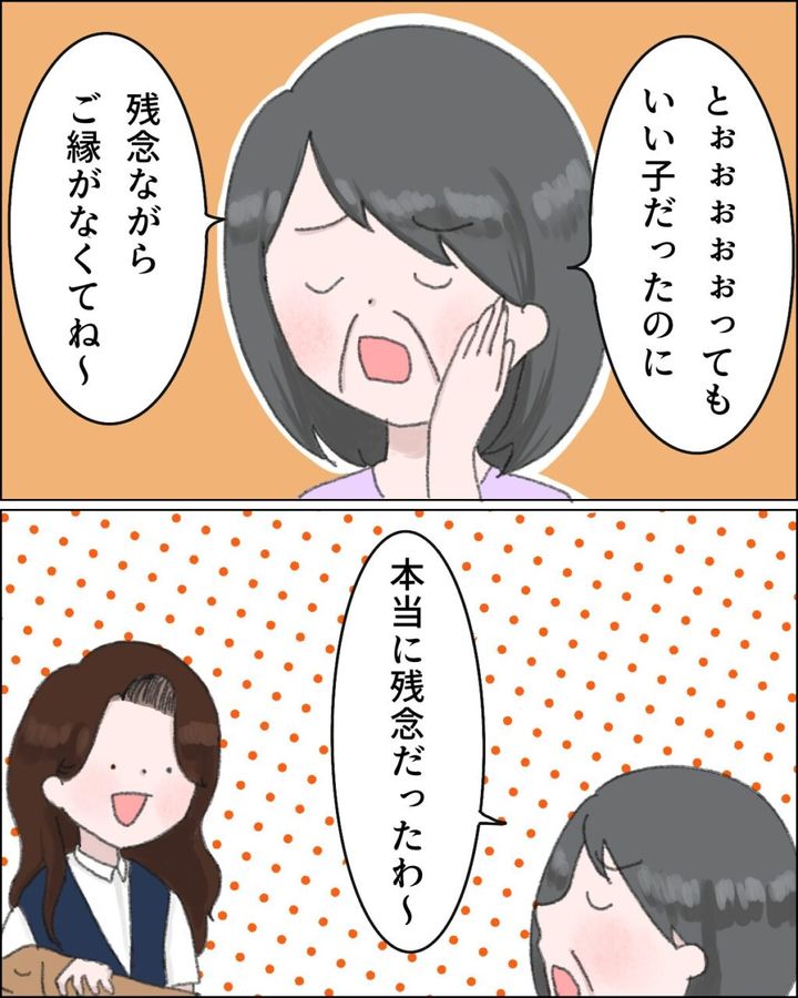 「とぉぉぉぉぉってもいい子だったのに、残念ながらご縁がなくてね~。本当に残念だったわ~」と残念そうに言う義母の言葉を聞いて、開いた口が塞がりませんでした。