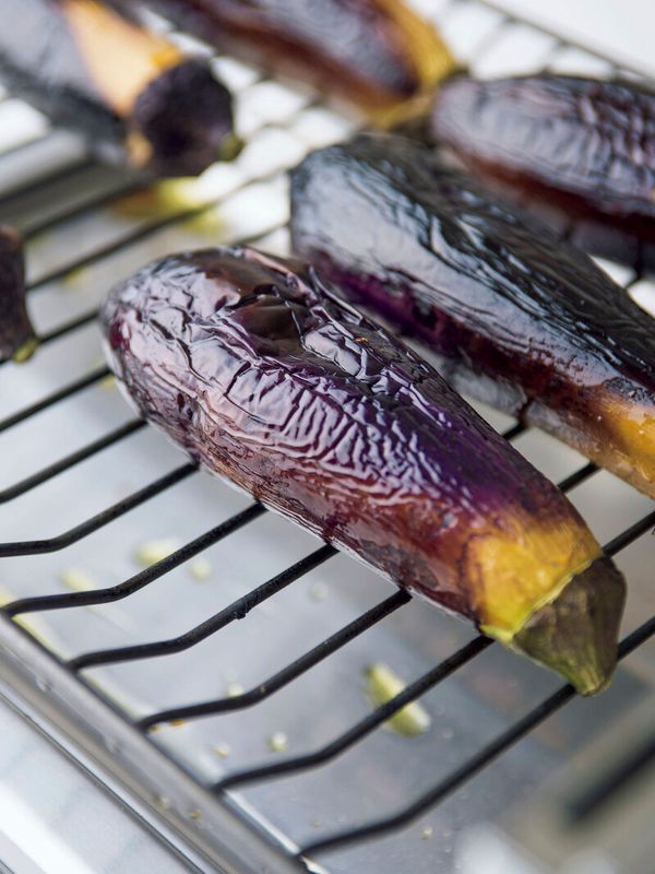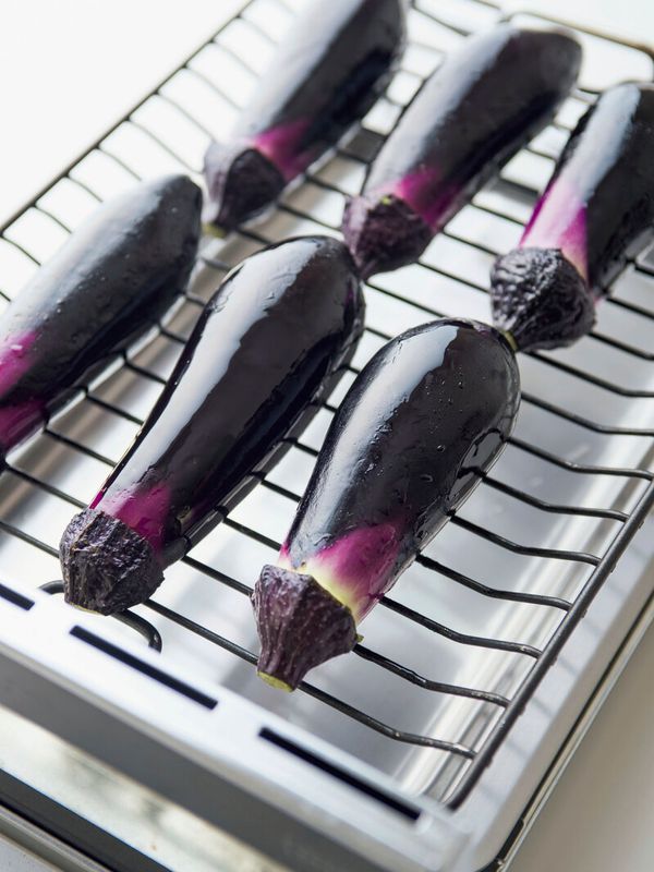 グリル(両面焼き)を強火で2分ほど予熱し、なすを並べる。均一に火が通るよう、ときどき位置を変えながら12~15分焼く(片面焼きの場合は、途中6~7分焼いたら裏返す)。