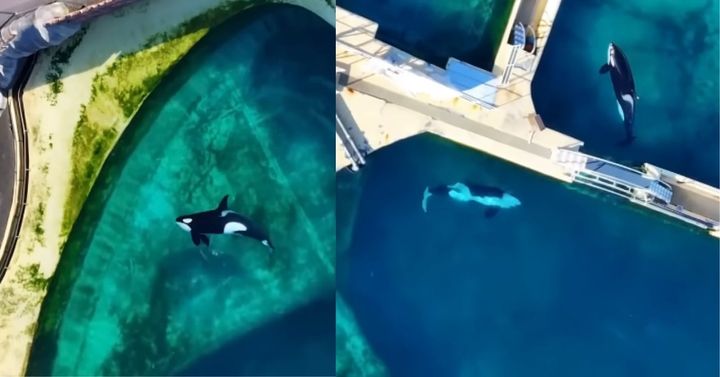 閉鎖されたプールに取り残された「シャチの親子」の映像が話題に