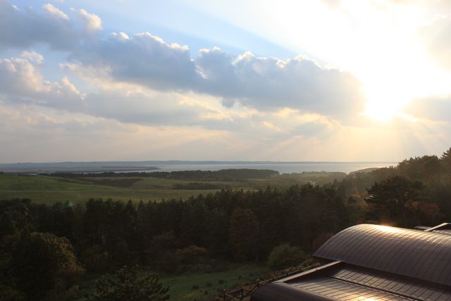 道の駅から見える夕景 ©道の駅 十三湖高原トーサムグリーンパーク