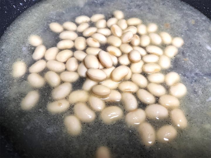 3. 大豆を加えて味見をして、足りなければ塩、白こしょうを加えます。