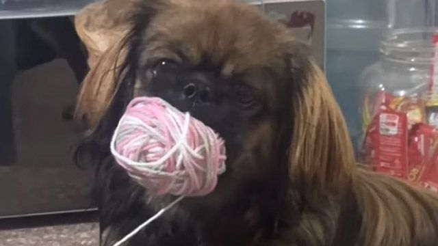 3. 毛糸玉キープ係! おばあちゃんの編み物を見守る犬さんに癒される