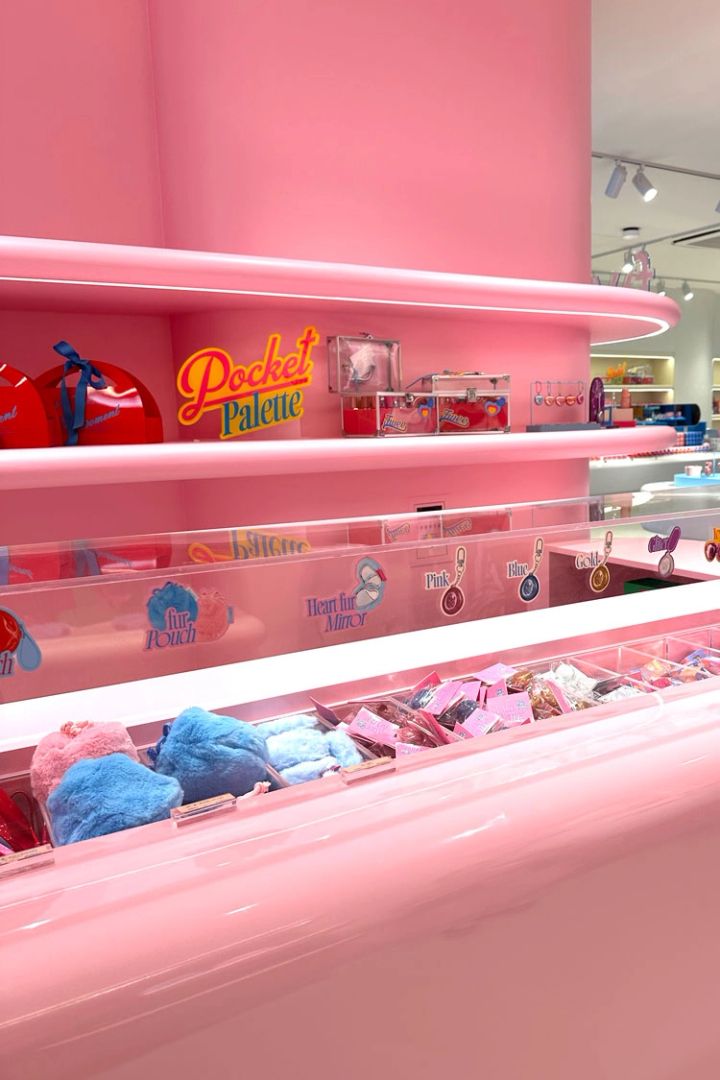 お店は可愛いバス停が目印!ブランドカラーの赤と青のトーンの店内は、可愛いがあふれています♡
