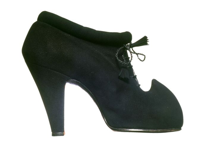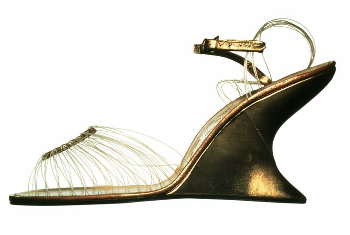 フェラガモは、創業者サルヴァトーレ・フェラガモの歴史的アーカイブから2足の象徴的なシューズを出展。1938年に制作されたアンテロープの革を用いたレースアップシューズは、サイの角を用いた彫刻的なつま先が印象的で、型破りな素材選びと構造美を追求したサルヴァトーレの美学を表している。一方、1947年に登場した「インビジブル・サンダル」は、透明なナイロンストラップとキッドレザーのウェッジソールを組み合わせた革新的な一足で、“ファッション界のオスカー”とも称されるニーマン・マーカス賞を受賞した。
