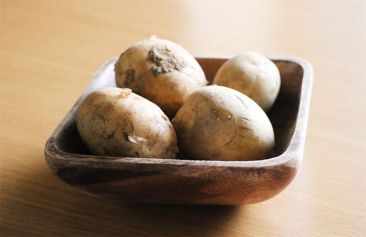 チンしたばかりのじゃがいもはとても熱いので要注意!