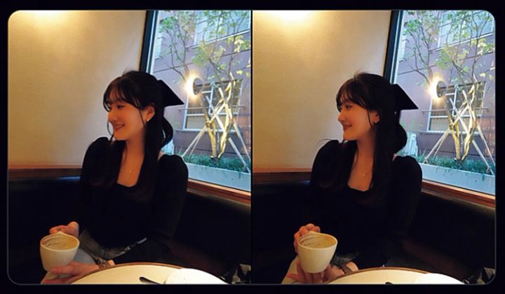 カフェでのお写真を2枚組みあわせてのせると、まるでハーフカメラで撮ったようなしゃれた雰囲気に早変わり。ストーリー性も出て◎。