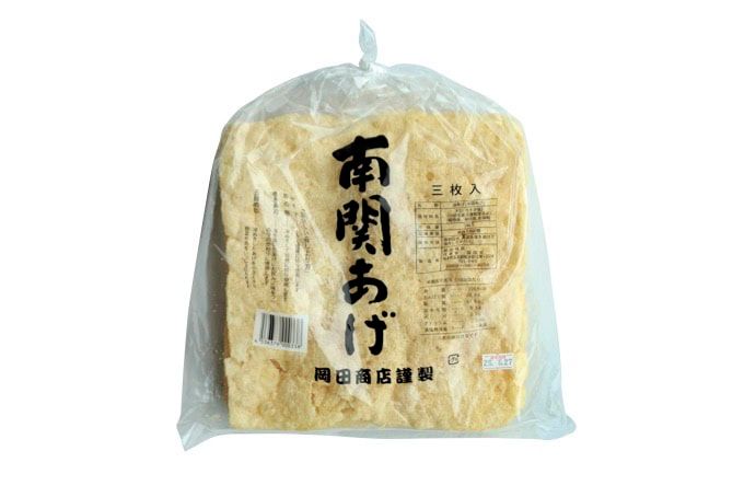 一枚一枚丁寧に揚げられた、「岡田商店」の大きなおあげ。味噌汁やお鍋などに、小さく砕いて入れれば、深い味わいに。南関あげ ¥684
