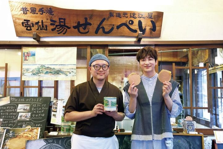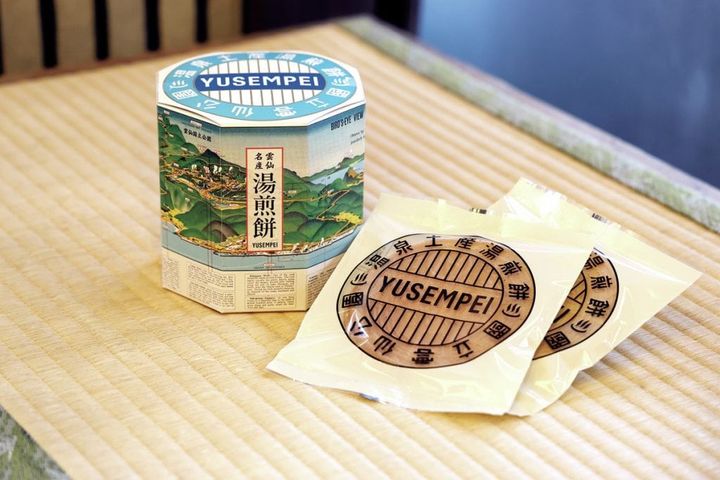 生地のなかに小浜温泉の源泉を使った「湯せんぺい」は、雲仙で130年愛されるお菓子。