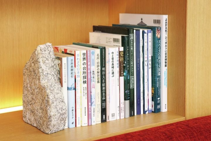 『界 雲仙』にあるトラベルライブラリーは、24時間閲覧可能。本棚に並んだ、長崎や貿易を感じさせる船などの骨董品を鑑賞したり、コーヒーやハーブティーを飲みながら、思い思いの時間を過ごすことができます。