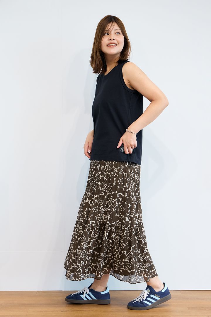 T3SLEEVELESS/ノースリーブT※Lサイズ着用¥1,500(ユニクロ×アニヤ・ハインドマーチ/ユニクロ)スカート¥3,990※6月上旬販売予定(ユニクロ)その他本人私物