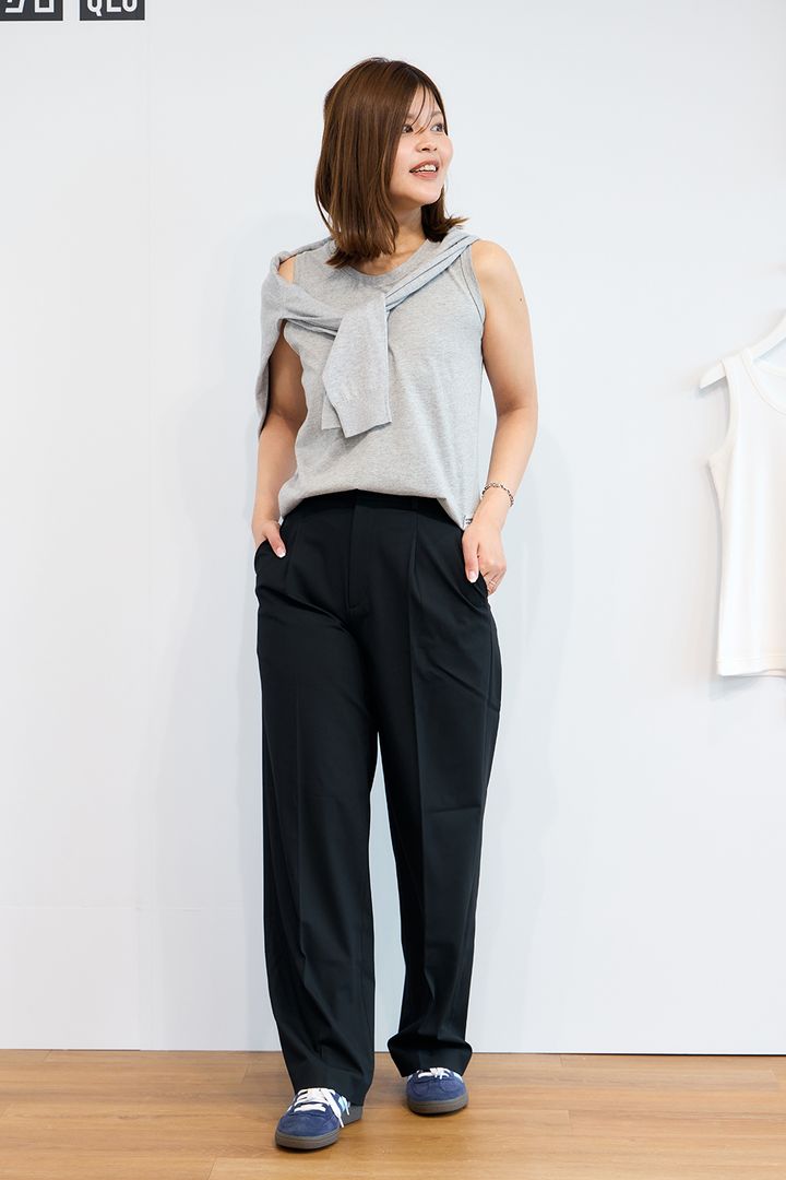 T3SLEEVELESS/ノースリーブT※Mサイズ着用¥1,500(ユニクロ×アニヤ・ハインドマーチ/ユニクロ)カーディガン¥2,990パンツ¥3,990(ともにユニクロ)その他本人私物
