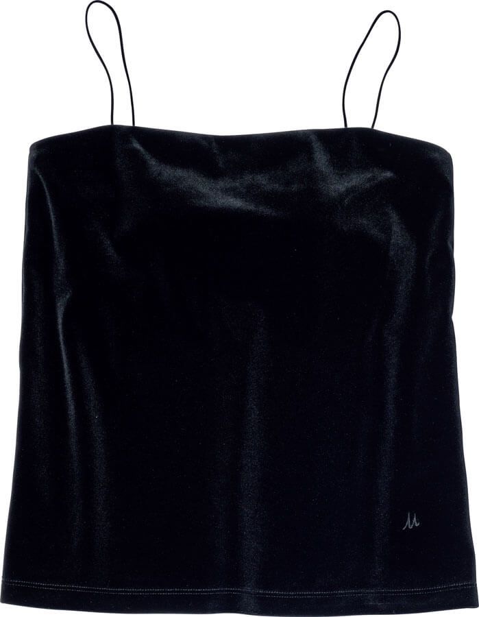 華奢な肩ひもは伸縮性があるのでずり落ちる心配なし! ベロア素材でおしゃれのアクセントを。