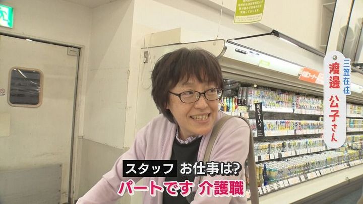 渡邊さん:「いまはパートです。介護職。トイレの介助けや食事の配膳、お部屋の掃除などいろいろです」