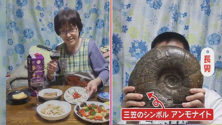 ちなみに息子さん、写真は恥ずかしいということで、三笠のシンボル“アンモナイトの置物”で、顔を隠して送ってくれました!