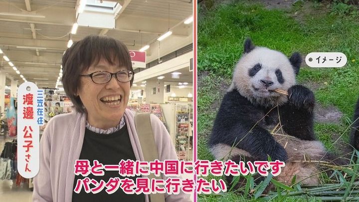 渡邊さん:「母と一緒に中国に行きたいです。パンダを見に行きたい」