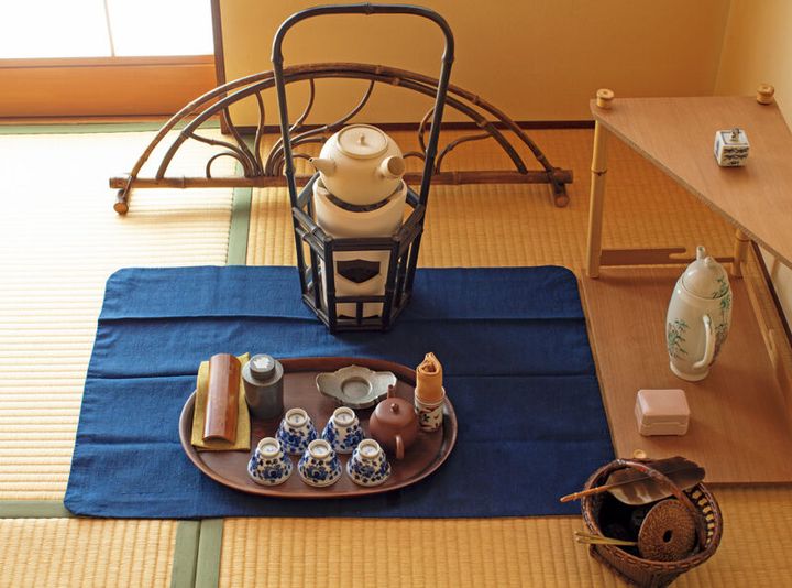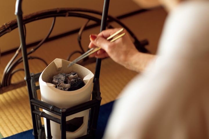 煎茶道の「松風棚」のお手前。炭出前のときは涼炉にお香を焚き、ほのかな香りが広がります。
