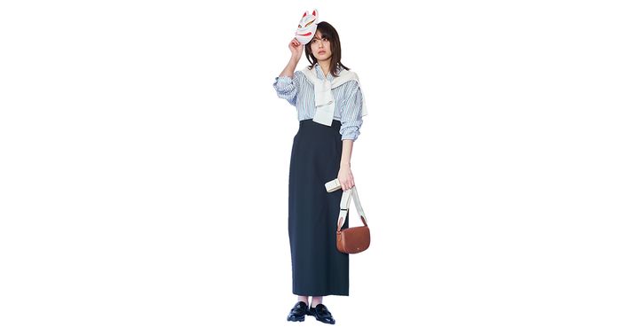 3. 脚長効果も!ゆるシャツ×Iラインスカートで叶える洗練トラッドスタイル